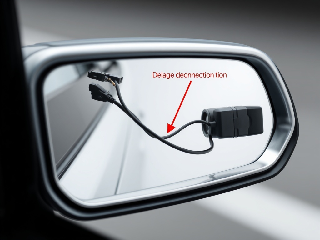 エアロミラーカバーの交換作業において、最も神経を使う工程の一つが、ミラーレンズの取り外しです。特に、ブラインドスポットモニター(BSM)が搭載されている車両の場合、ミラーレンズ裏側に配置されたBSMセンサーやその配線に細心の注意を払う必要があります。これらの配線は非常にデリケートであり、不用意な力を加えると容易に断線してしまうリスクがあるためです。